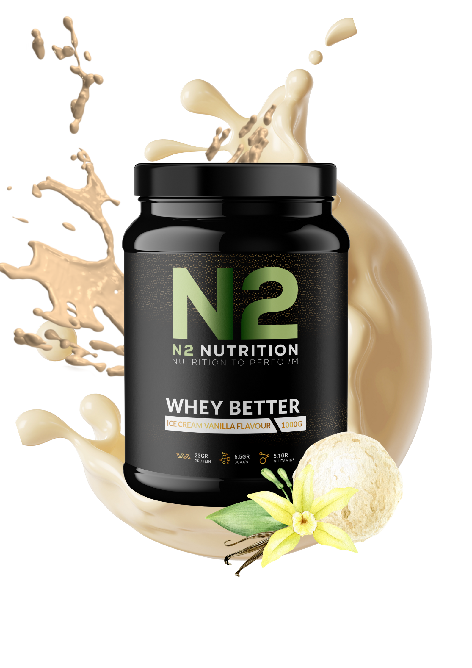 N2 Whey Better is een hoogwaardige eiwitshake die spierherstel en -groei ondersteunt. Laag in vet en suiker, snel opneembaar, en perfect na je training.